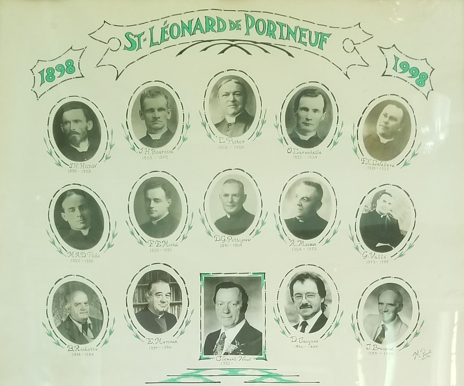 L'Église de Saint-LéonardConstruite en brique et en bois en 1898, l’église paroissiale de Saint-Léonard-de-Portneuf possède une nef à un vaisseau, avec deux tribunes, une voûte en forme d’arc et le plan au sol rectangulaire choeur en saillie. L’église a été bénie le 20 novembre 1898, par l’archevêque de Québec. Les plans de l’église ont été tracés par M. Joseph-Georges Bussières, architecte de la ville de Québec. La maçonnerie et la charpenterie ont été faites par M. Joseph Saint-Hilaire, de Saint-Romuald. L’intérieur chaleureux de l’église, alliant la sobriété des boiseries à la luminosité des verrières, invite de nos jours encore à la paix et au recueillement. Une saisissante représentation de la passion du Christ avec ses hauts personnages de bois, sculptés par Louis Jobin en 1917, frappe l’imagination par ses imposantes dimensions et son réalisme. Les trois cloches de l’église ont été bénies le 7 juin 1914 et la lumière électrique y a été installée le 20 mars 1927. L’îlot paroissial comprend, outre le presbytère, un cimetière, inauguré le 18 juillet 1900, dont le chemin de la croix en granit installé en 1917. Historiquement, le premier baptême célébré dans l’église a eu lieu le 29 janvier 1899 : Joseph-Adélard, Léonard, fils de Narcisse Greffard, cultivateur et d’Alexina Genois, a été baptisé. Le premier mariage a été célébré le 6 février 1899, entre Joseph Beaumont, fils de Joseph Beaumont et de Adéline Rivard et Alexina Beaupré, fille de Honoré Beaupré et de Célina Galarneau. La première sépulture s’est réalisée le 14 février 1899 : Élisabeth Petit, épouse de feu Hubert Gilbert, décédée le 10 février 1899 à l’âge de 85 ans, a été enterrée. En 1903, les huit premiers marguilliers de la fabrique ont été nommés : Élie Frenette, Jacques Rochette, Joseph Morasse, Michel Julien, Ferdinand Gingras, François-Xavier Hardy, Ferdinand Trudel et William Marshall. L’église de Saint-Léonard-de-Portneuf possède deux orgues : Casavant Frères, fabriqué en 1931 et Rodgers daté de 1990. *Source, site Web Grand Québec Nous vous invitons à consulter l'album photos de notre belle Église en cliquant ici |